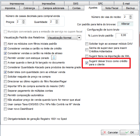 É possível sugerir para deixar o troco da venda como crédito para o cliente, para configurar acesse Configurações - Parâmetros - ajustes e marque Sugerir deixar troco como crédito para o cliente;