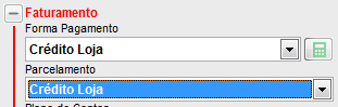 Após inserir o valor do crédito é possível utiliza-lo em vendas, para isso, após o preenchimento da NFe, escolha o Faturamento "Crédito Loja";