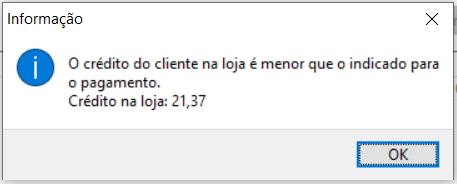 Atenção! Somente clientes com CPF cadastrado no sistema poderão usufruir da forma de pagamento Crédito Loja! Na venda será obrigatório informar cliente com CPF cadastrado.