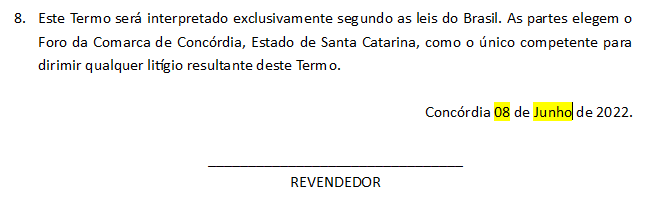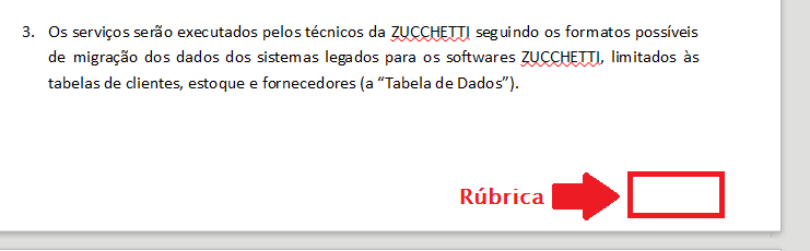 Por fim, assine por extenso o termo onde informa REVENDEDOR, em seguida, digitalize o documento e envie para conversoes@Zucchetti.com.br com o Assunto: Termo do Cliente CNPJ revenda CNPJ (e informe o CNPJ do cliente e da revenda).