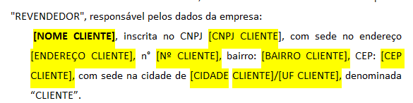 Lembrando que trata-se apenas de um exemplo, as informações preenchidas aqui precisam estar de acordo com a revenda e cliente solicitante!