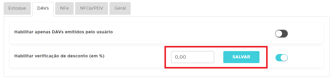Em cada módulo citado acima terá a opção para habilitar a verificação do desconto em percentual;