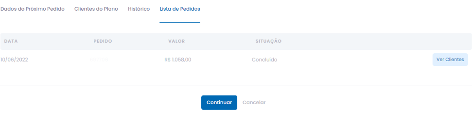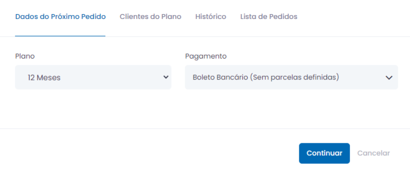 Guia dados do Próximo Pedido - Aqui serão exibidos os dados da próxima renovação que será executada de forma automática, como Pagamento, Data, Valor e a relação das licenças dos clientes.