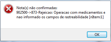 Rejeicao: Operacao com medicamentos e nao informado os campos de rastreabilidade