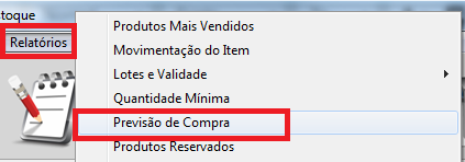 Em seguida, clique em Relatórios - Previsão de compra;