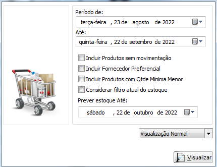 - Prever estoque até - Escolha até qual data deseja que o sistema preveja a compra;