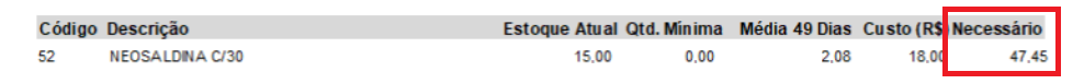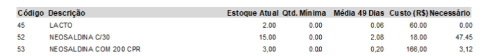 Com base no estoque atual e compras efetuadas, esse relatório é gerado para previsão de compras futuras. Lembrando que no relatório pode-se incluir produtos sem movimentação, fornecedor preferencial ou produtos com quantidade mínima menor.