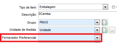 - Incluir Fornecedor Preferencial - Será incluso o fornecedor principal, cadastrável no próprio item:
