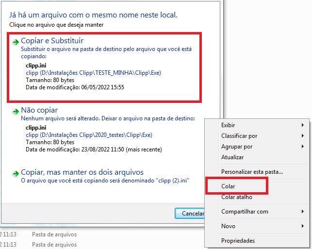 Clique com o botão direito em algum local vazio e clique em Colar, caso peça para substituir, poderá confirmar.