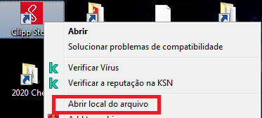 Agora, feche todas as pastas e localize o ícone do ClippStore em sua área de trabalho, clique com o botão direito nele e em seguida Abrir Local do Arquivo;