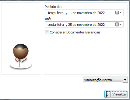 Será possível escolher o período e se deseja considerar documentos gerenciais no relatório;