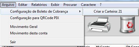 Clique no menu Arquivo - Configuração de boleto de cobrança e escolha a carteira 21;