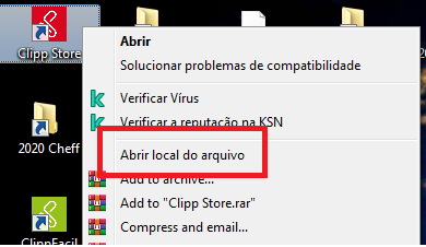 Localize o atalho do Clipp em sua área de trabalho e clique no botão Abrir Local do Arquivo;