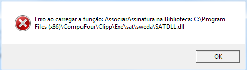 Ao efetuar a associação da assinatura SAT para equipamentos Sweda, ocorre a seguinte mensagem: