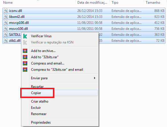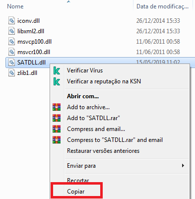 Agora, retorne até a pasta onde descompactou as dlls e copie apenas a dll SATDLL.dll;