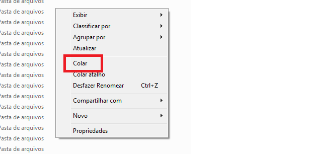 Clique com o botão direito na tela em algum local vazio e clique em Colar;