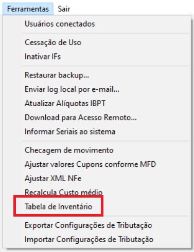OBS: Caso há produtos com quantidade negativas, o valor desses produtos é subtraido no momento de edição da tabela de inventário, porém na geração do inventário é incluso somente produtos com quantidade superior a zero, portanto o valor na geração do inventário será maior do que o apresentado na tabela de inventário.