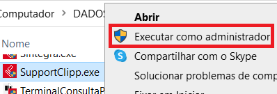 Em seguida, localize o executável SupportClipp.exe, clique com o botão direito e Executar como administrador;