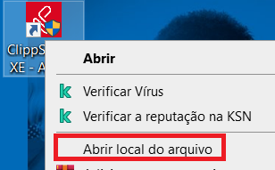 Para acessar, localize o atalho do ClippPRO em sua área de trabalho, clique com o botão direito nele e em seguida na opção Abrir local do arquivo;