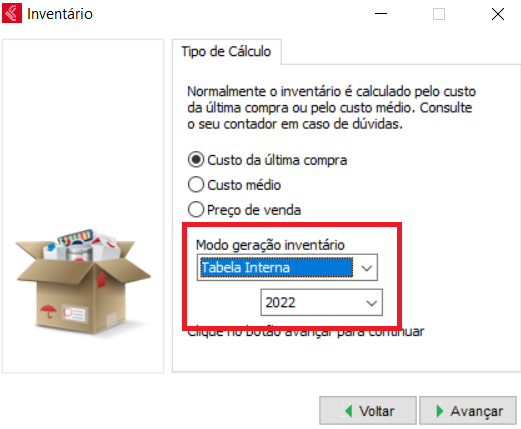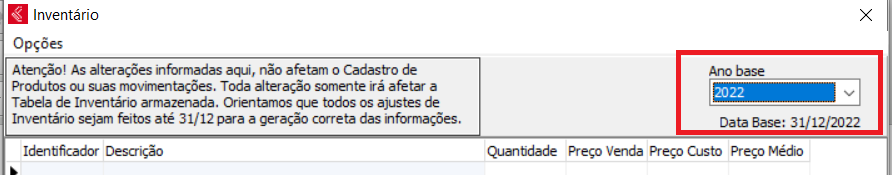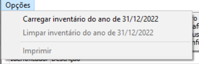 Clique em Opções - Carregar inventário do ano de (data definida);