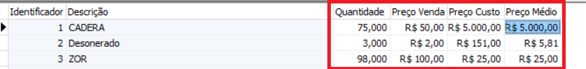 Será possível alterar a quantidade, preço venda, preço custo e preço médio