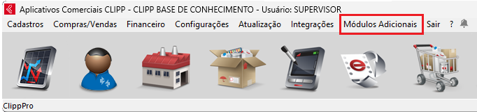 Abrindo o ClippPro, na parte superior da tela, ao lado da palavra sair, você encontrará a opção Módulos Adicionais: