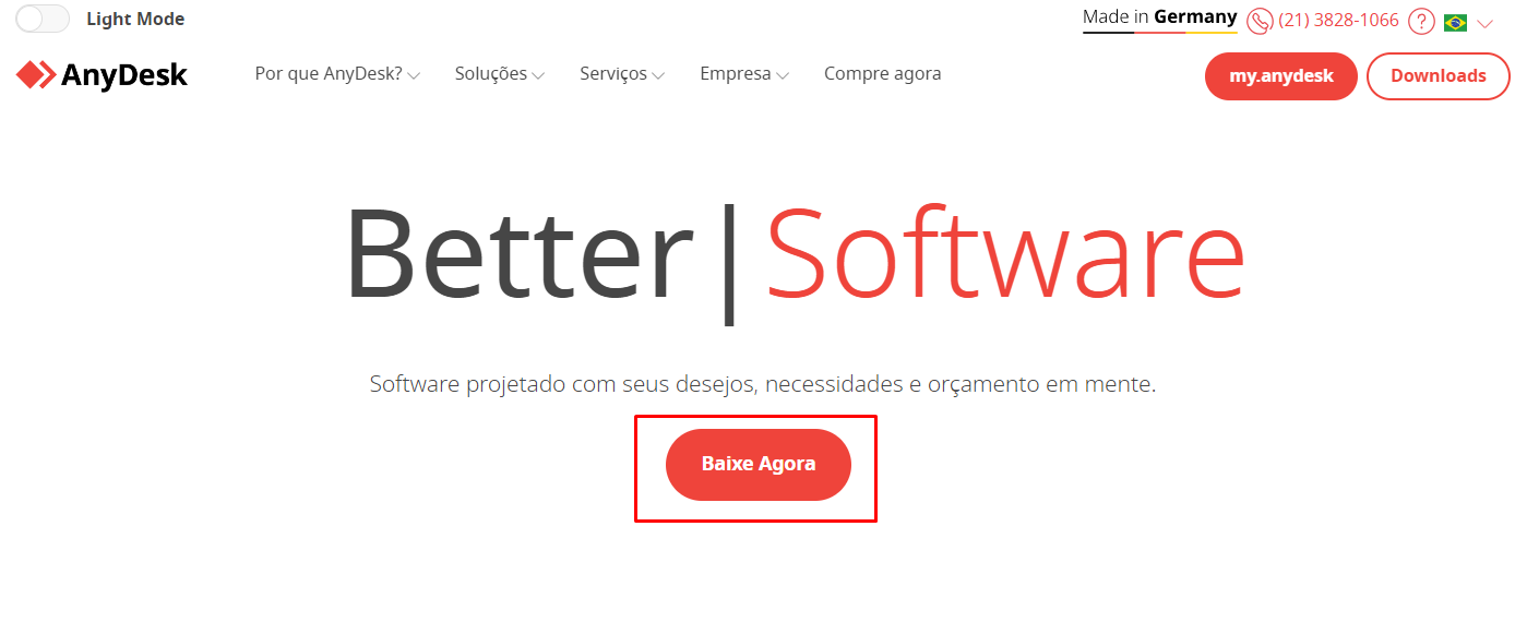 Primeiramente acesse o site https://anydesk.com/pt, acessando o site clique em Baixe Agora;