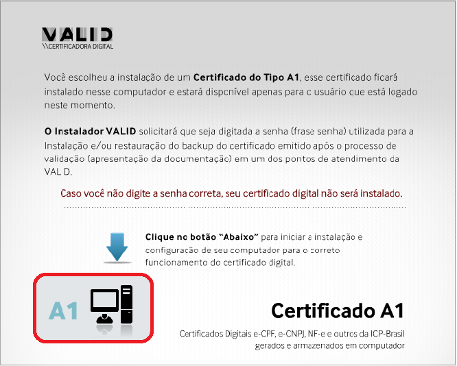 Será necessário realizar a reinstalação do certificado digital através do Instalador Valid, primeiramente clique aqui para baixar o instalador.