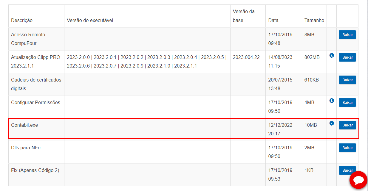 Role a página até encontrar o arquivo Contabil.exe e clique em Baixar;