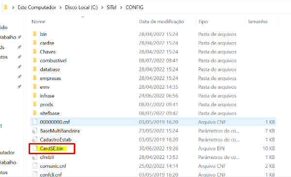 1 - Vá até Disco Loca (C):\SiTef\CONFIG e localize o arquivo CardSE.bin;