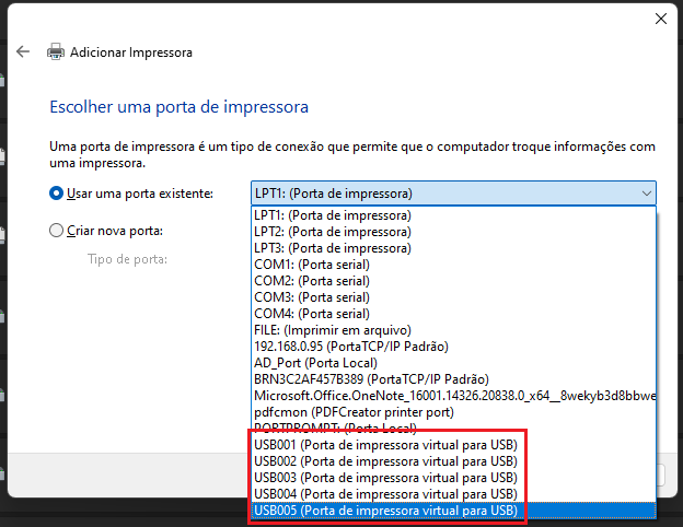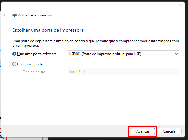 Selecionada a porta, clique em Avançar.