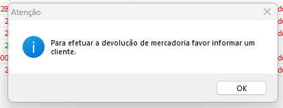 Se na venda original não foi informado um cliente, a solução irá solicitar que seja informado um cliente para a devolução.