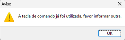 Caso selecione uma tecla de atalho para uma tecla que já está sendo utilizado por outra forma de pagamento, apresentará a mensagem a baixo: