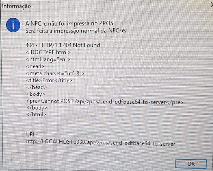 A NFC-e não foi impressa no ZPOS. - Vero no Clipp Pro