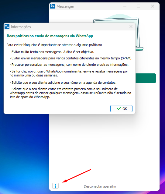 Será apresentado o código QR-Code, acesse o WhatsApp que deseja utilizar para o envio, e efetue a leitura do QR-Code.