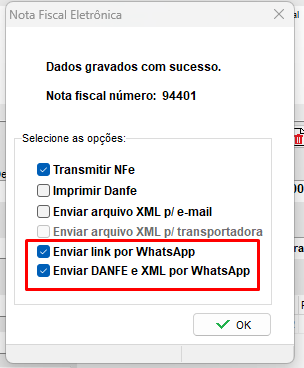No sistema ClippPro, é possível fazer o envio da NFC-e e da NF-e no momento da transmissão da nota, através de um link gerado na nuvem, sem a necessidade de utilizar o WhatsApp Web ou WhatsApp Desktop.