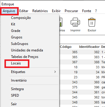 Em seguida, acesse o menu Arquivo - Locais;