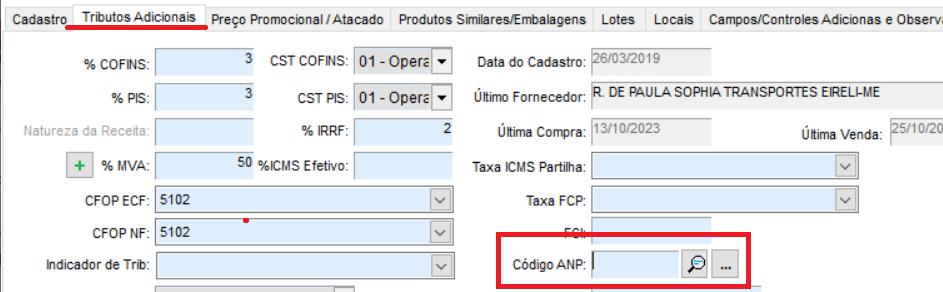 Abra o cadastro do seu item, clique na aba Tributos Adicionais e realize a troca do código ANP, a ser verificado com a contabilidade.