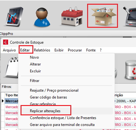 Com o sistema aberto, vá até o módulo do Estoque - Editar - Replicar Alterações.