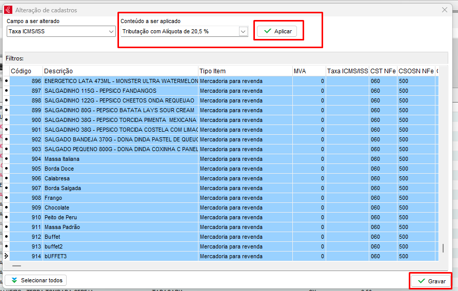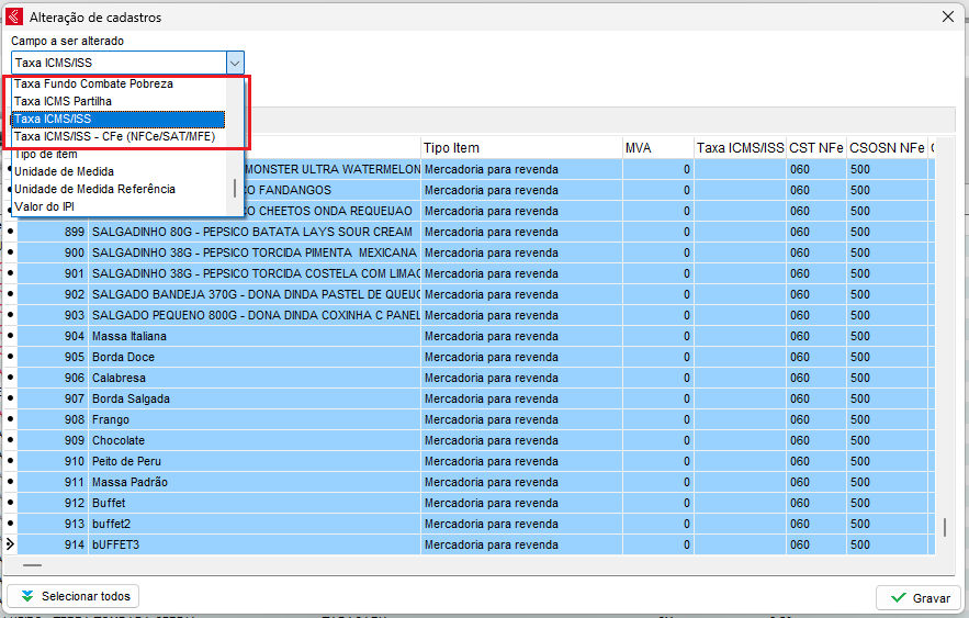 Lembrando que depois que gravar será aplicado para todos os itens listado nessa tela!