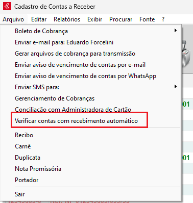 Além da mensagem apresentada no momento de acessar o módulo de contas a receber, é possível efetuar a verificação de forma manual