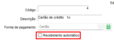 Para os casos onde a forma de pagameto NÃO for cartão, a opção ficará INATIVA (Não será permitido marcar).