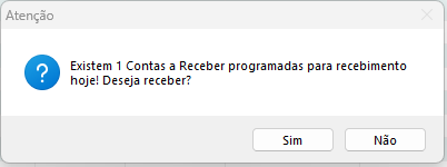 Ao abrir o módulo de Contas a Receber, será feita a validação se possui parcelas com a data de vencimento para o dia.