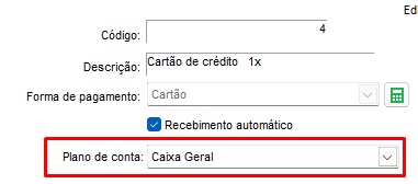 Marcando a opção Recebimento automático, será apresentado o campo de Plano de Contas