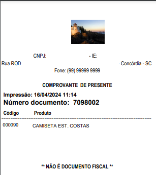 O comprovante de presente é uma impressão feita no sistema sendo utilizado como forma de uma Vale-Presente, podendo o mesmo ser impresso tanto por uma venda na Nota Fiscal do Consumidor Eletrônico (NFC-e), quanto para cupons emitidos no Venda Gerencial.