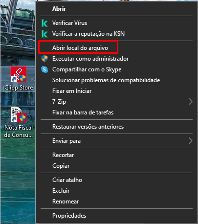 Vá na área de trabalho e pressione com o botão direto no ClippStore - Abrir local do arquivo.