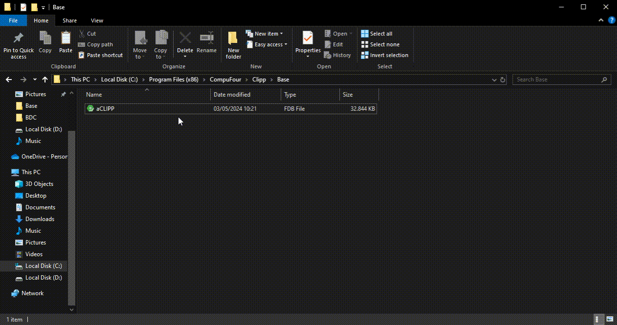Em seguida, no caminho da instalação volte para a pasta Clipp e abra a pasta Base, verifique o nome da Base, caso esteja diferente de CLIPP.FDB ou CLIPP renomeie para os nomes anteriores e abra o sistema novamente.