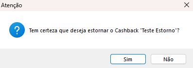 OBS: Caso o cashback já tenha sido utilizado não será possível fazer o estorno e só será possível estornar movimentações lançadas de forma manual, ou seja, não será possível estornar desta forma os lançamentos de cashback vinculadas a notas emitidas.