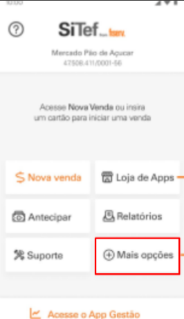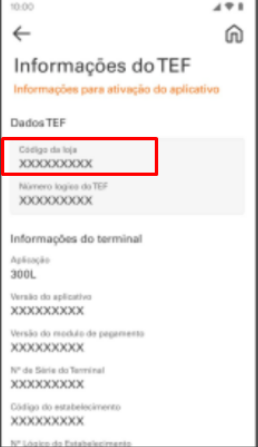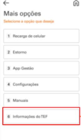 Acessando o aplicativo Sitef, vá em Mais opções > Informações do TEF e salve o Código da Loja.