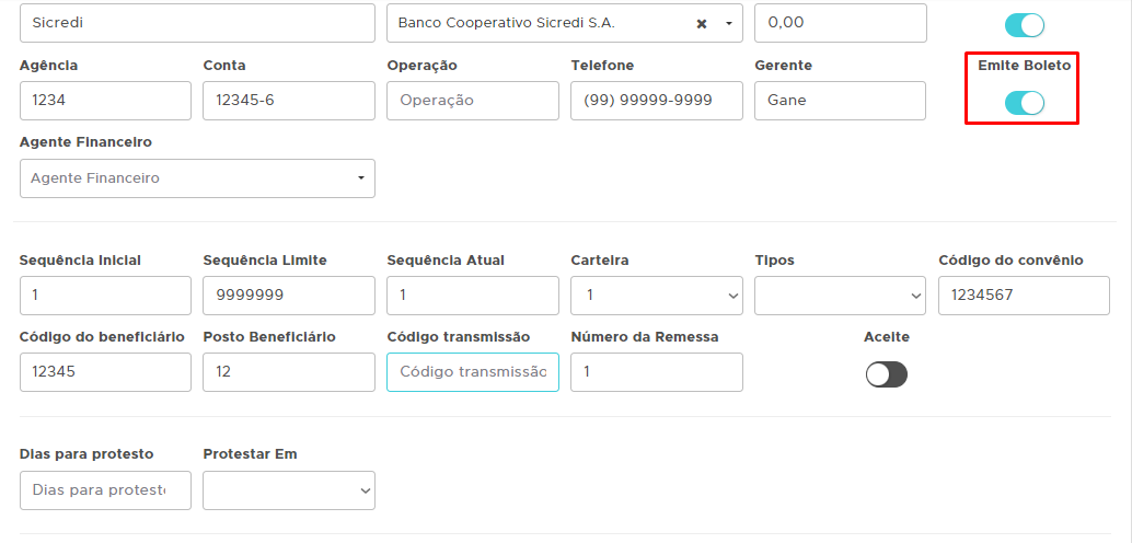 Após isso Marque a opção Emite Boleto, e preencha os campos conforme orientação do seu banco